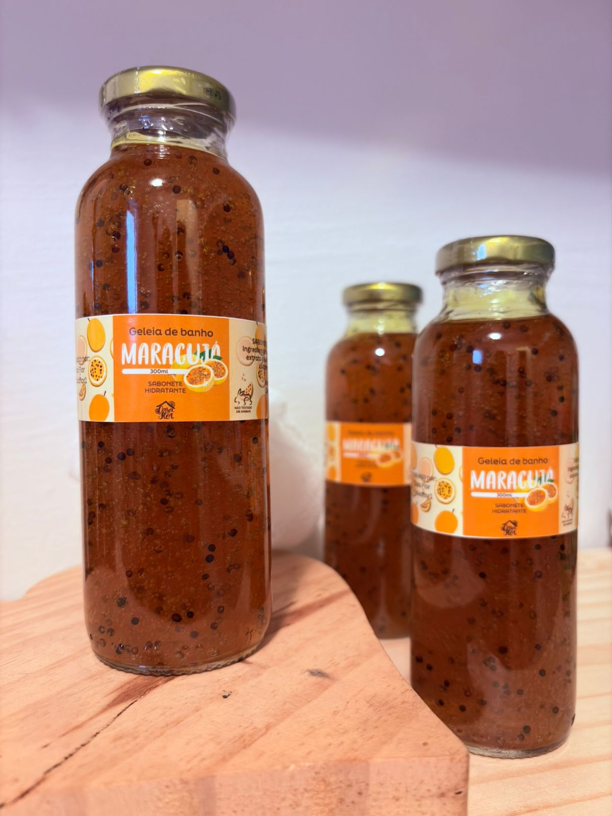 Frasco de vidro com 300ml.