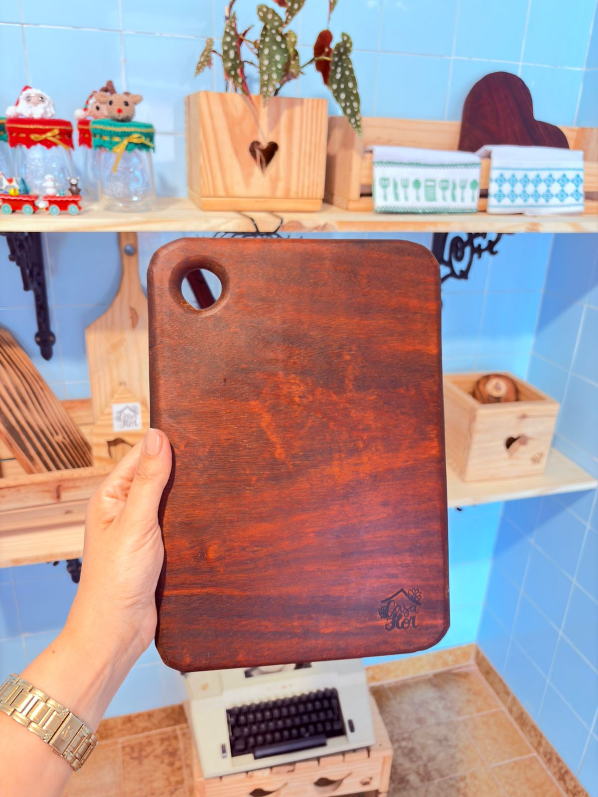 Medida tábua retangular: 20 cm altura, 29 cm comprimento aproximadamente.